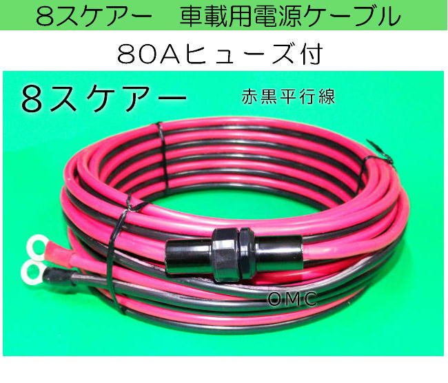 トラック用電源コード 8スケアー 8m 電源コード 80A ヒューズ付